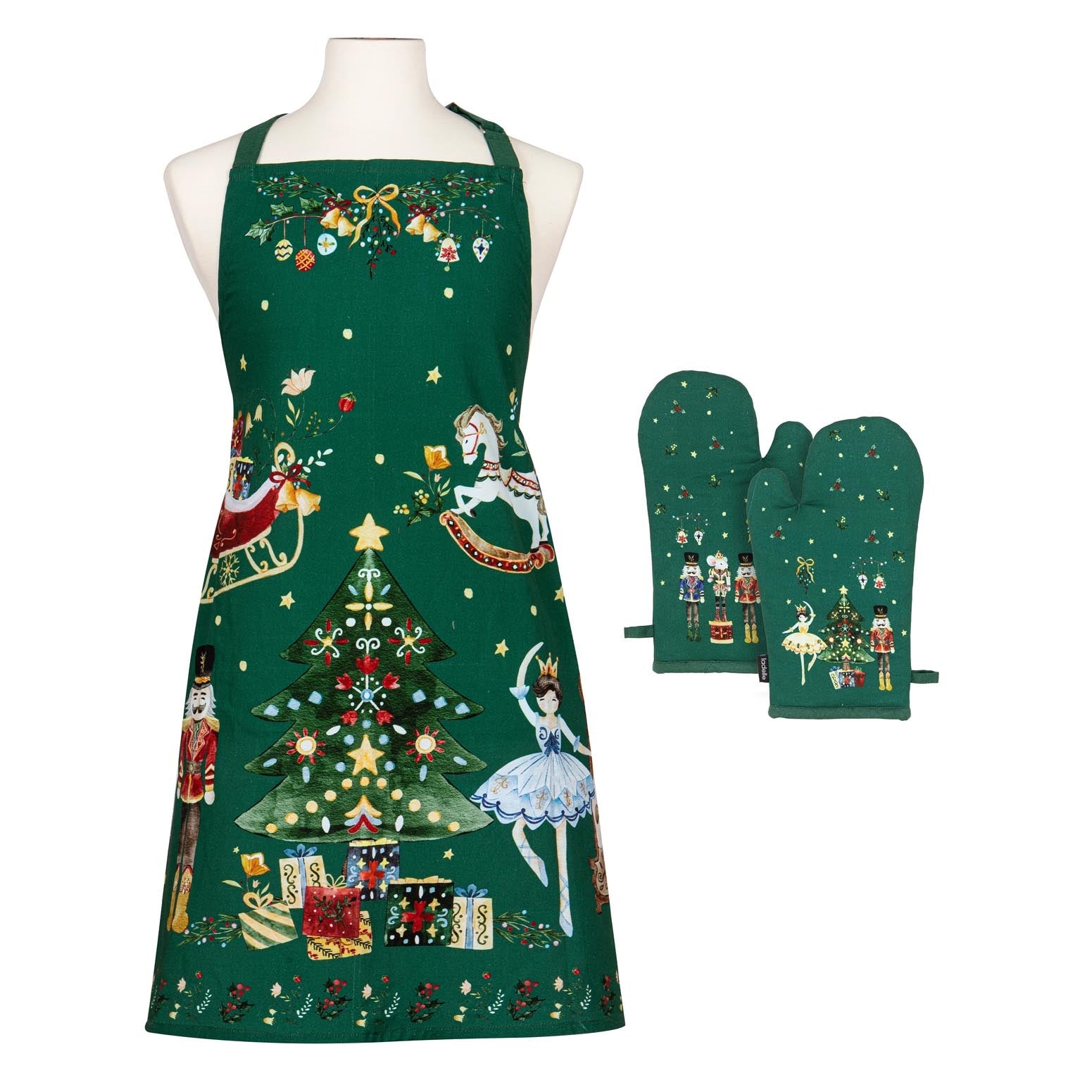 Christmas Wonderland Green Apron & Oven Mitt Set