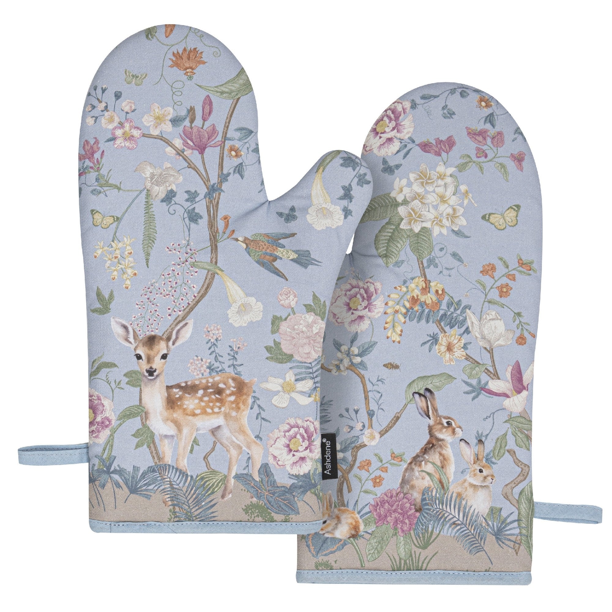 Step into the captivating world of the Enchanted Forest range where charming bunnies and deer peek playfully from lush greenery. Delicate chinoiserie florals bloom gracefully against a rich blue background, offering a whimsical yet elegant touch that brings nature's beauty into any space.
