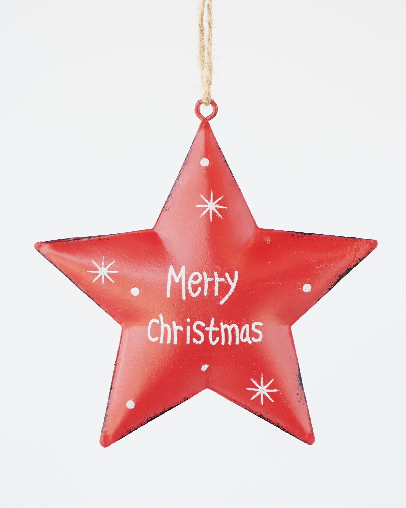 This star-shaped metal ornament in festive red will make any tree shine brighter. With a jolly Merry Christmas message inscribed, this metal decoration is guaranteed to give your home a cozy holiday feel.