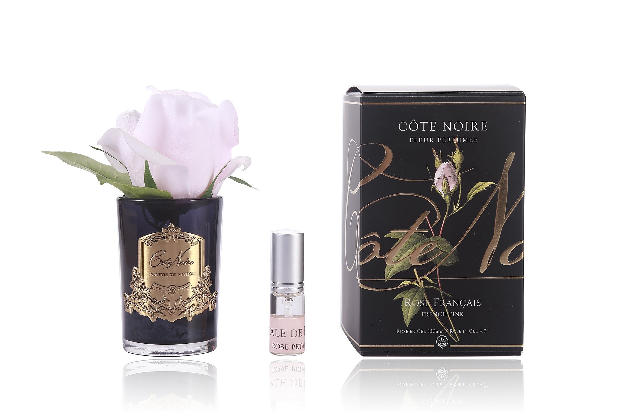 Cote Noire Rose Bud Single French Pink In Black Glass